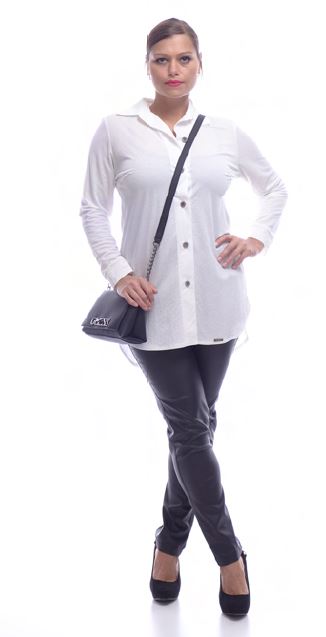 Jednoduchá černá delší košile, k dispozici také ve smetanové barvě.