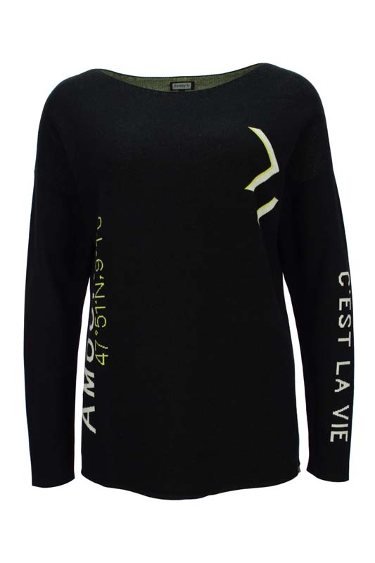 Jednoduchý svetřík s lodičkovým výstřihem od oblíbené německé značky Kenny S. Rovný střih, vepředu mírně kratší. Délka ve velikosti 38 cca 62 cm.