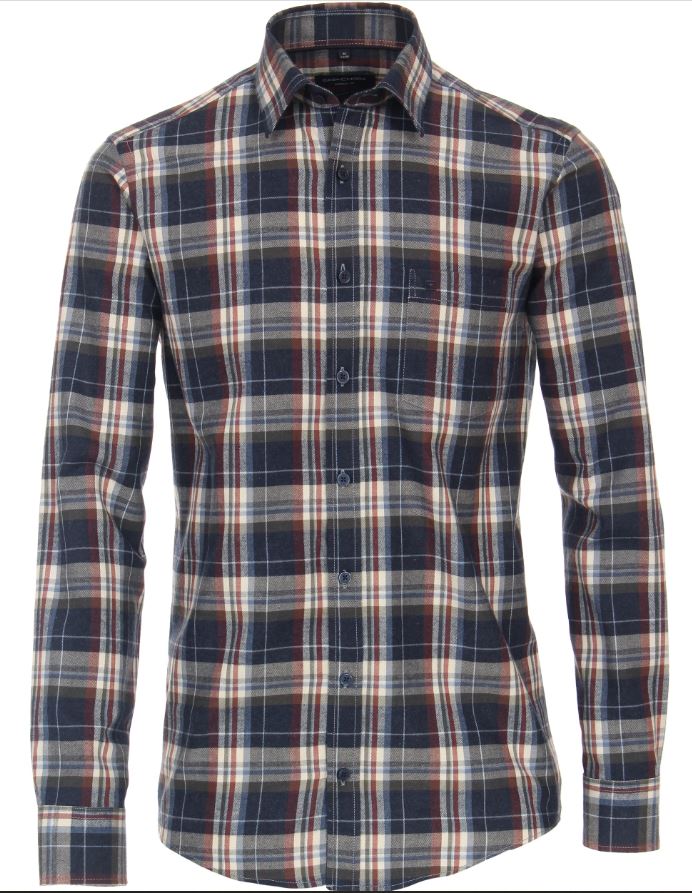 Modro-červená kostkovaná flanelová košile od oblíbené německé značky Casamoda. Střih Casual Fit oblíbený i ve větších velikostech.