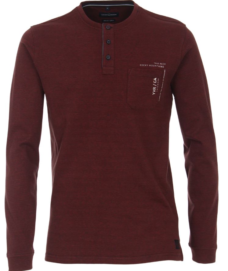 Cihlové tričko s dlouhým rukávem s knoflíčky a menším potiskem na předním díle od oblíbené německé značky Casamoda.