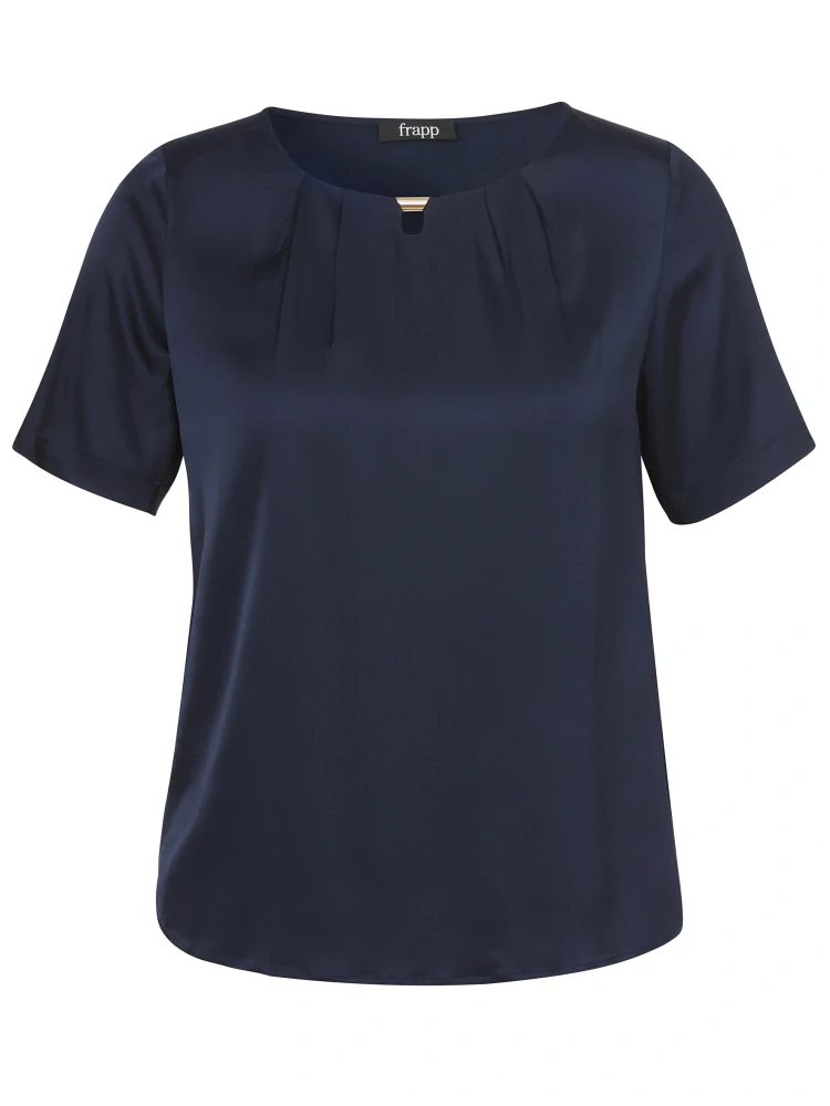 Lesklá tmavě modrá halenka s ozdobným výstřihem od oblíbené německé značky Via appia - řada Frapp. Velikosti odpovídají německému číslování, k dispozici také ve smetanové barvě.