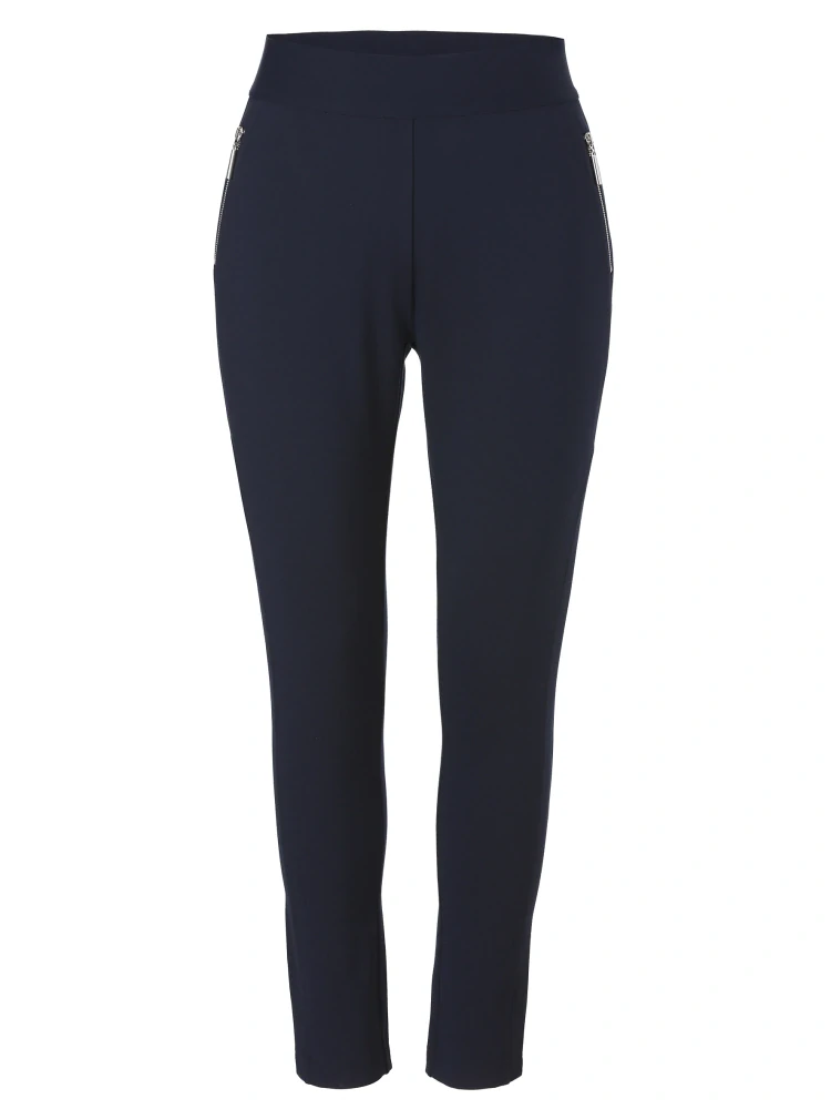 Tmavě modré užší kalhoty od oblíbené německé značky Via appia - produktová řada Frapp. Ozdobné postranní kapsy na zipy. Velikosti odpovídají německému číslování. K dispozici také v černé barvě.