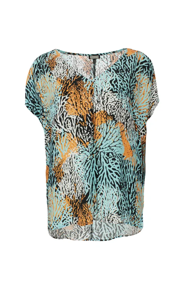 Korálová halenka se spadlým rukávem od oblíbené německé značky Kenny S. Velice příjemný splývavý materiál.