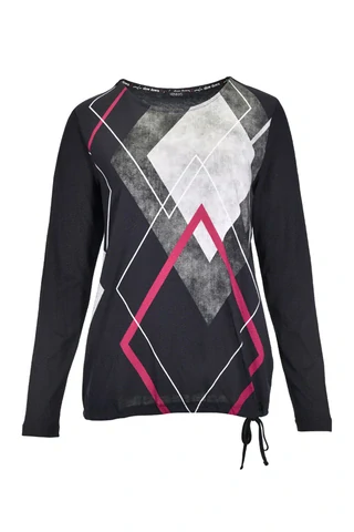 Černé triko s potiskem na předním díle od oblíbené německé značky Kenny S. Délka ve velikosti 38 cca 64 cm. Spodní díl do tunýlku pro jednoduché podkasání - střih oblíbený i ve větších velikostech. Velikosti odpovídají německému číslování.
