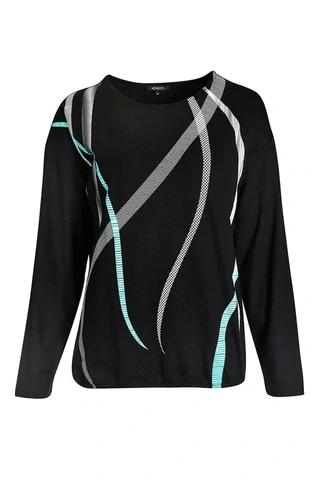 Černé triko s barevným potiskem na předním díle od oblíbené německé značky Kenny S. Spodní část do tunýlku - střih oblíbený i ve větších velikostech, délka ve velikosti 38 - 65 cm. Velikosti odpovídají německému číslování.