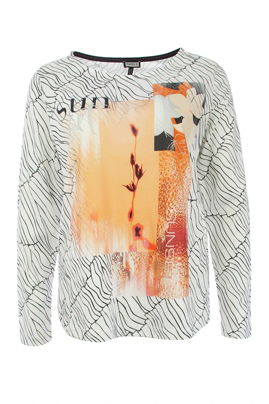 Černo-bílé triko s dlouhým rukávem s potiskem od oblíbené německé značky Kenny S, délka ve velikosti 38 je 64 cm.