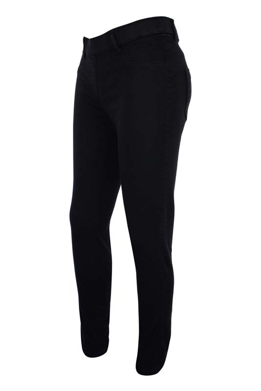 Strečové kalhoty v klasické černé barvě, vhodné k delším svetrům, halenkám, díky podílu elastanu jsou velice pohodlné, zúžený skinny fit střih vhodný i do vysokých kozaček.