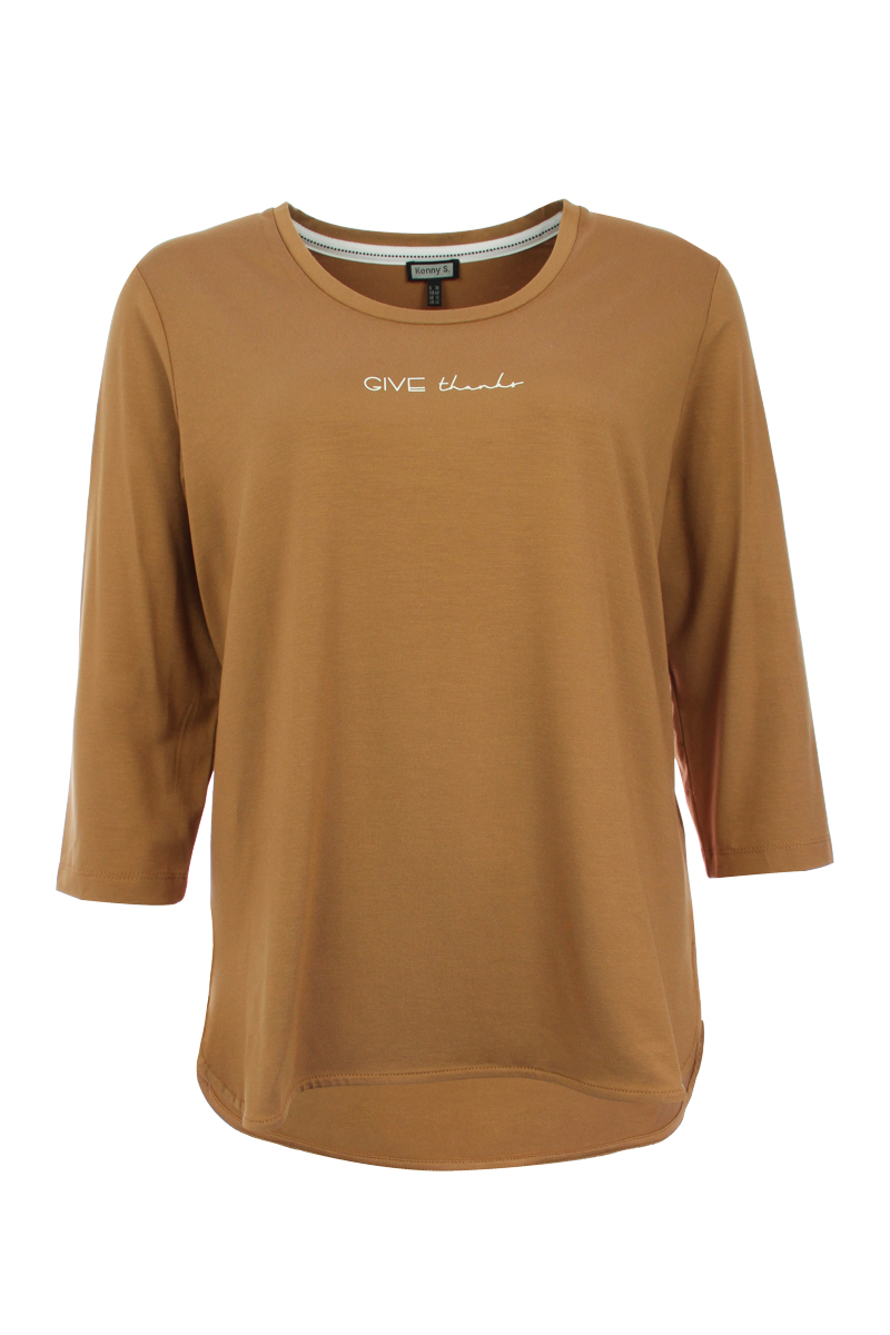 Hnědé triko "Give thanks" s 3/4 rukávem od oblíbené německé značky Kenny S z kolekce Sunset Vibes. Velikosti odpovídají německému číslování.