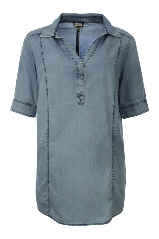 Delší halenka jeans look od oblíbené německé značky Kenny S, velice příjemný poddajný materiál, rovný střih, délka ve velikosti 38 cca 74 cm.