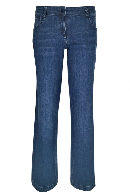 Širší modré jeans od oblíbené německé značky Kenny S. Střih Paris-stretch. Širší nohavice v Marlen stylu, střední sed pro pohodlné nošení.