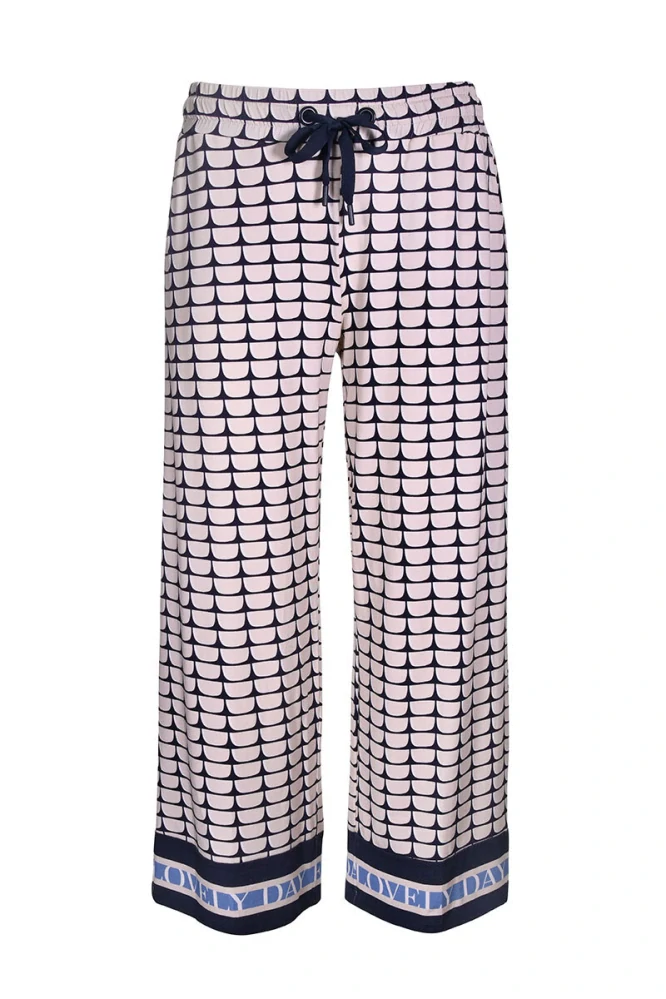 Tenké 7/8 kalhoty Kate s modro-mandlovým grafickým potiskem od oblíbené německé značky Kenny S. Velikosti odpovídají německému číslování.