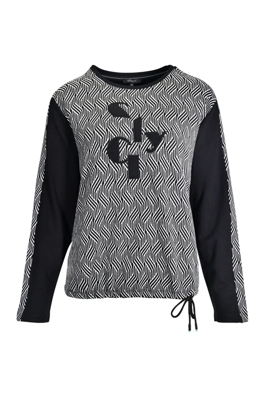 Šedo-černý svetřík s ozdobnými rukávy od oblíbené německé značky Kenny S. celý popis