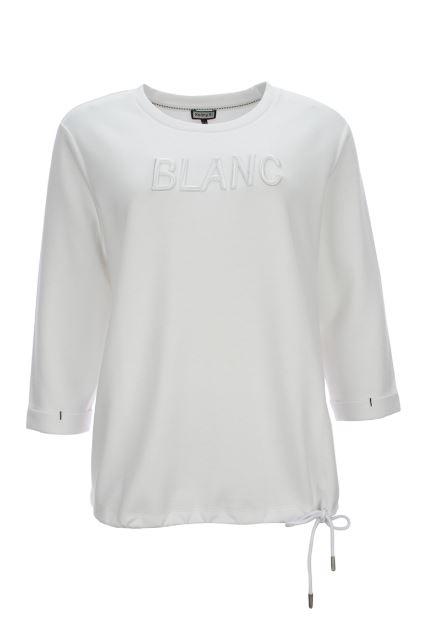 Smetanové triko s 3/4 rukávem od oblíbené německé značky Kenny S , 3 D nápis na předním díle, rovný střih s tunýlkem s možností stažení spodního dílu. Délka ve velikosti 38 cca 64 cm.