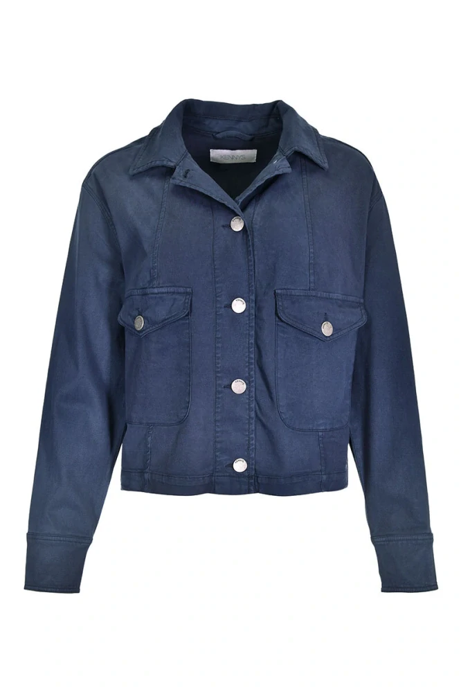 Tmavě modrá sportovní bundička s většími předními kapsami od oblíbené německé značky Kenny S, nedílná součást šatníku každé moderní ženy. celý popis