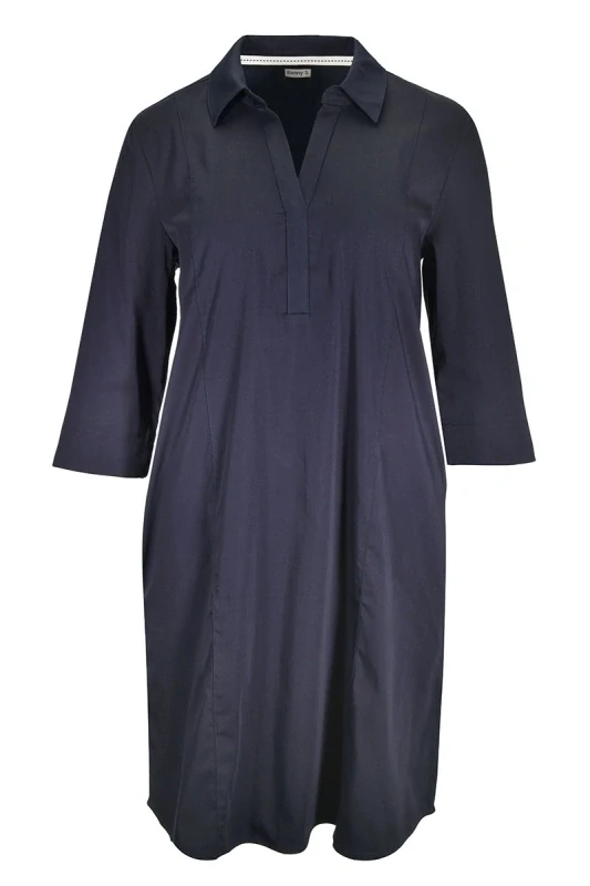 Tmavě modré šaty v tunikovém střihu se 7/8 rukávem od oblíbené německé značky Kenny S., postranní kapsy, velice příjemný elastický materiál. Délka ve velikosti 38 cca 98 cm.