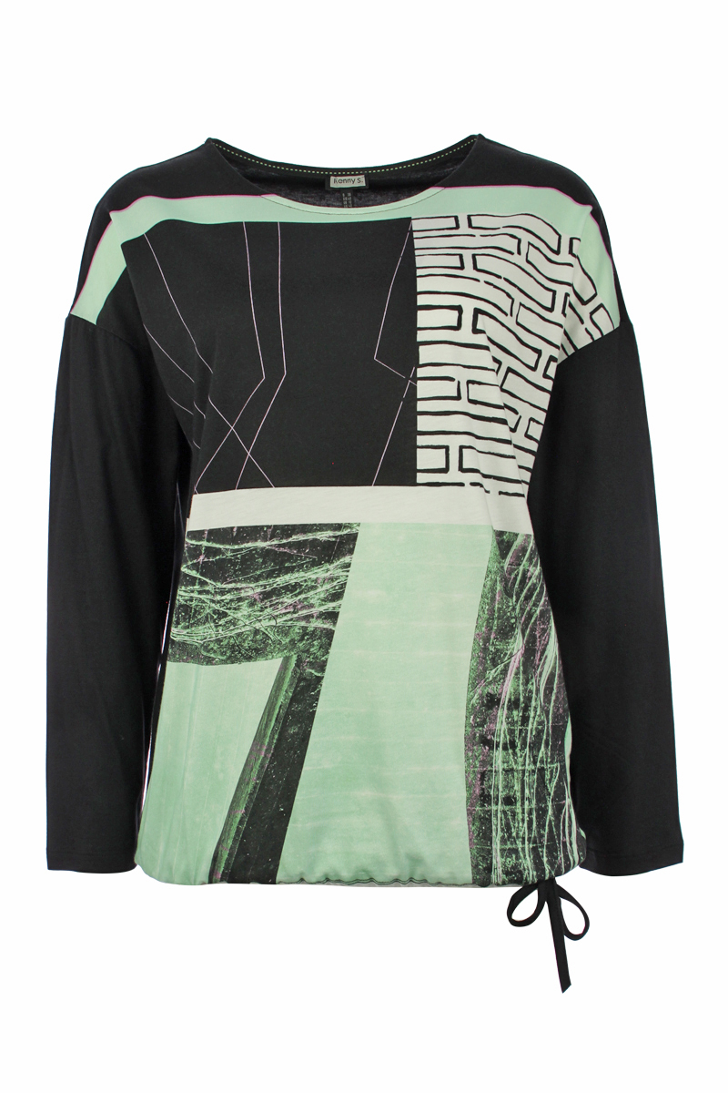 Antarcitové triko s barevným předním dílem od oblíbené německé značky Kenny S, spodní část do tunýlku - střih vhodný pro podkasání a oblíbený i ve větších velikostech. Délka ve velikosti 38 cca 64 cm. 50 % bavlna, 50 % modal celý popis