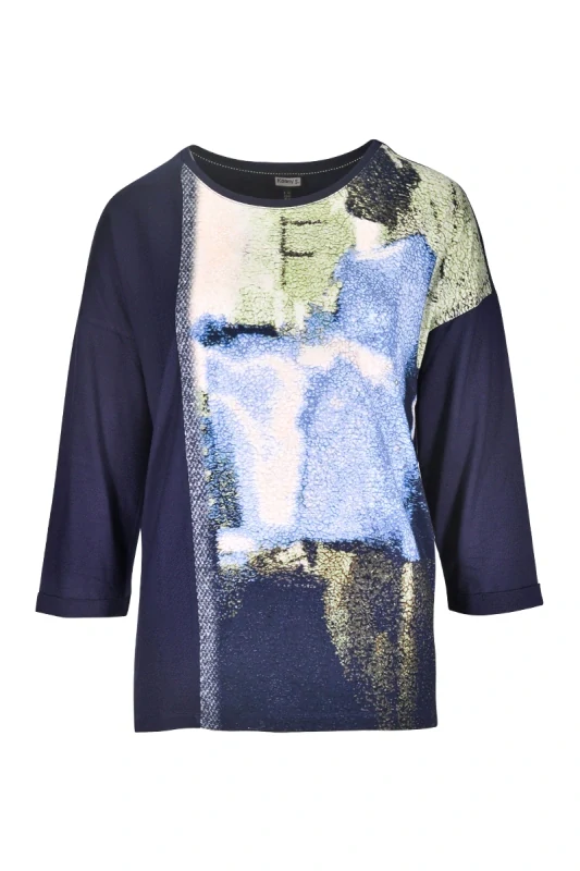 Tmavě modré triko s dlouhým rukávem s potiskem na předním díle od oblíbené německé značky Kenny S. , širší rovný střih. Délka ve velikosti 38 cca 70 cm.