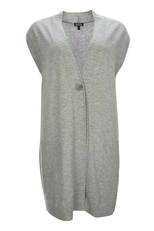 Šedá dlouhá pletená vestička s výstřihem do V, velice příjemný materiál. Délka ve velikosti 38 cca 90 cm. K dispozici také ve žluté barvě.