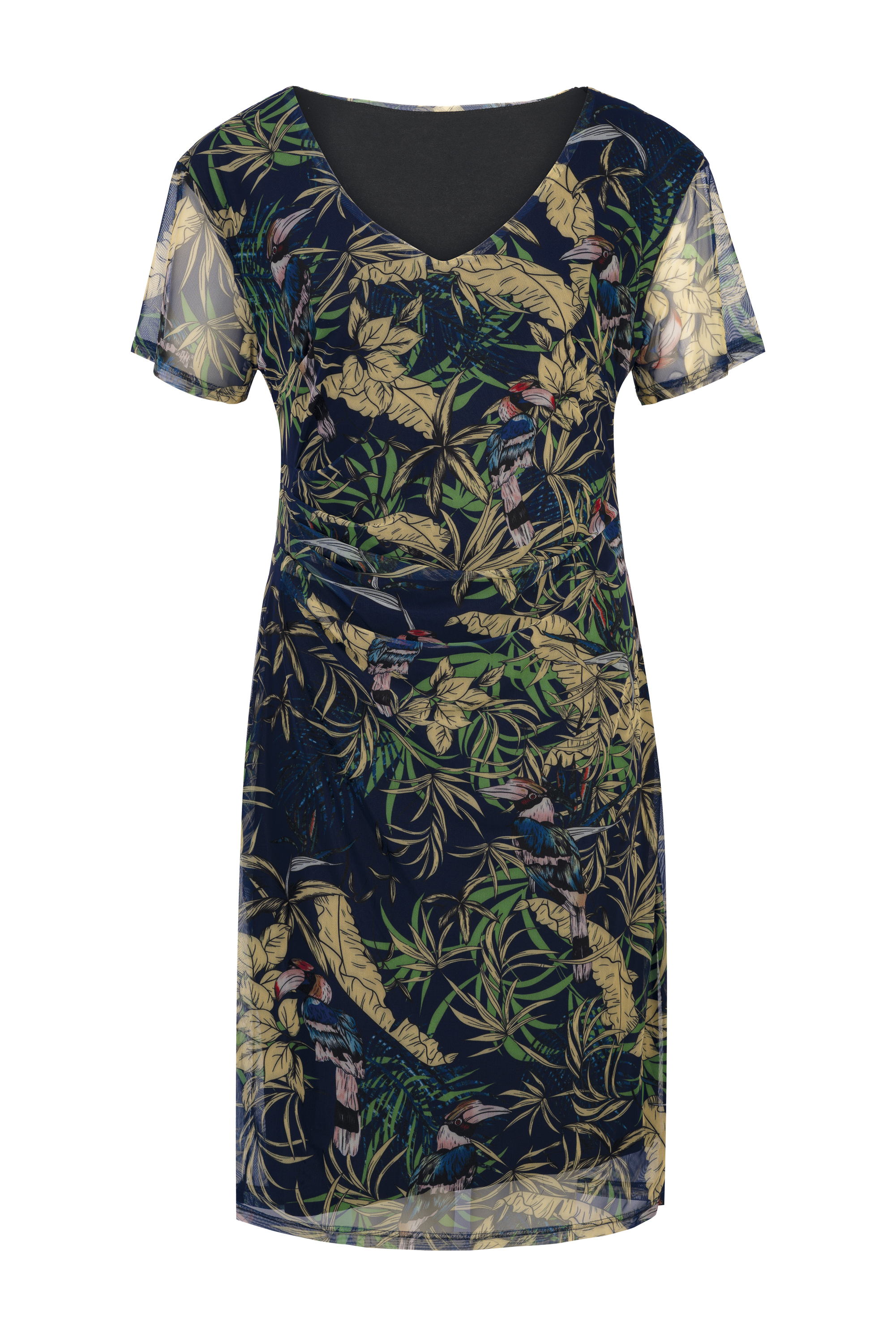 Květinové šaty od německé značky Million, šifonové šaty s podšívkou z elastického materiálu. Vhodné jak pro denní nošení, tak i pro slavnostnější příležitosti. V oblasti pasu postarnní sámky, které zakrývají nedostatky postavy. Podšívka je cca o 10 cm kratší než transparentní vrchní díl.