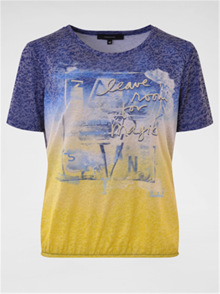 Barevné tričko v zajímavé kombinaci barev s potiskem předního dílu od německé značky Navigazione. Spodní díl do gumy pro možnost podkasání.