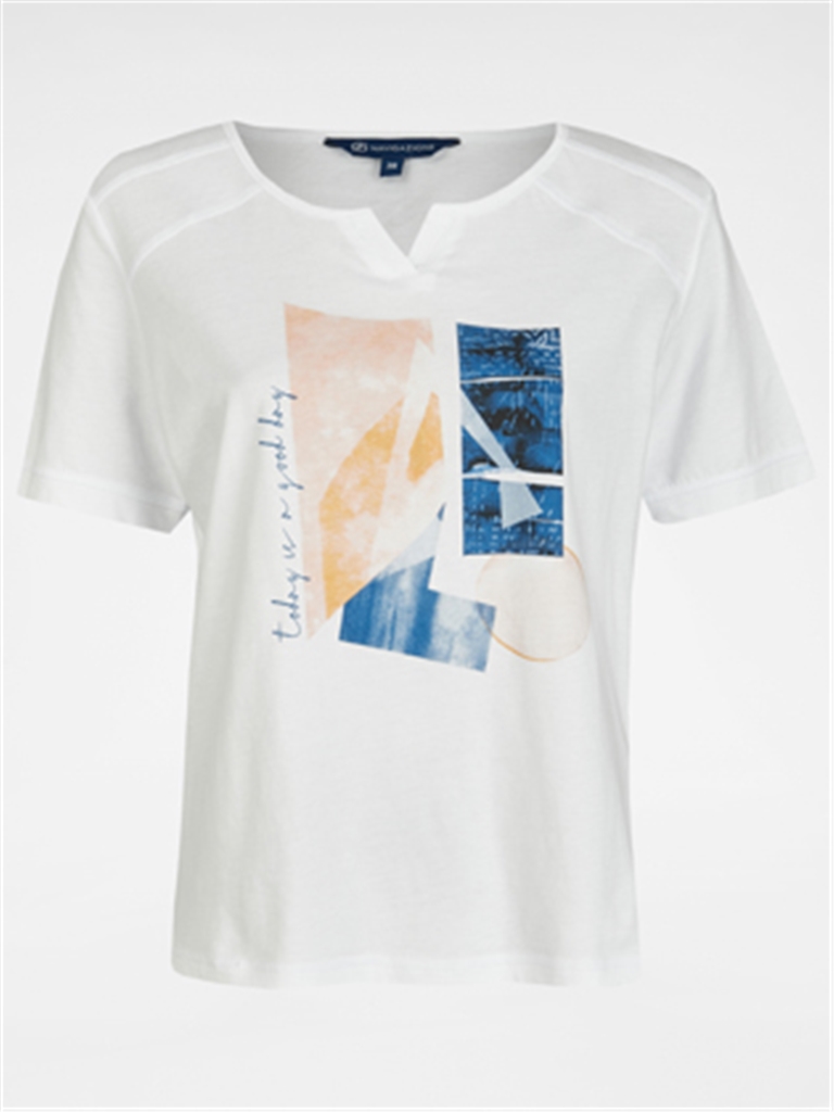 Bílé triko s rozhalenkou s potiskem předního dílu od německé značky Navigazione.