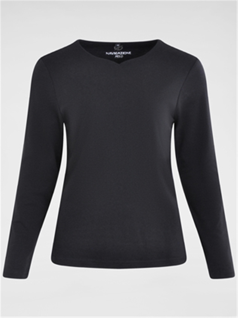 Jednoduché černé triko s dlouhým rukávem se zajímavě řešeným výstřihem od německé značky Navigazione. Velikosti odpovídají českému číslování, chcete-li vybranou velikost přeměřit, neváhejte nás kontaktovat na nicolmodacb@gmail.com.