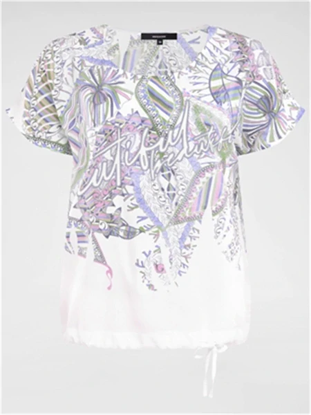 Halenka se spadlým rukávem s potiskem v pastelových barvách od německé značky Navigazione. Spodní část na stahování pro snadné podkasání - střih oblíbený i ve větších velikostech.