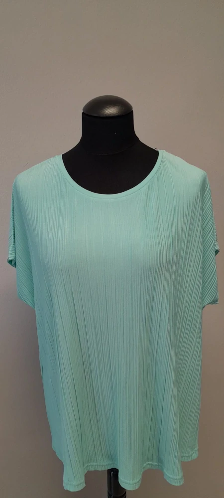 Jednoduché triko se spadlým rukávem v jemné mátové barvě od německé značky Navigazione. Velikosti odpovídají českému číslování.