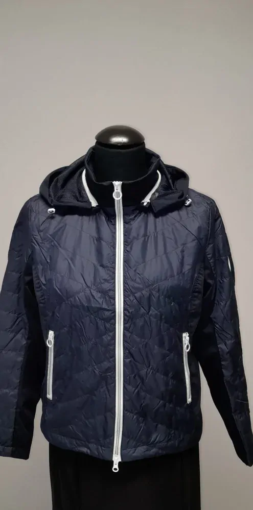 Tmavě modrá tenká prošívaná bundička s odepínací kapucí od německé značky Navigazione. Velikosti odpovídají německému číslování.