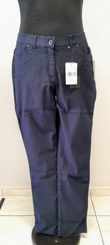 Tmavě modré teplejší kalhoty Laura s 5ti kapsami, strečový materiál, od německé značky Navigazione. Velikosti odpovídají českému číslování. Střih patrnější z oficiální fotografie v petrolejové barvě, nabízená barva je tmavě modrá (viz první fotografie).