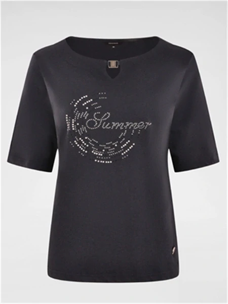 Jednoduché tmavě modré triko s krátkým rukávem a jemným potiskem na přední straně od německé značky Navigazione. Velikosti odpovídají českému číslování.