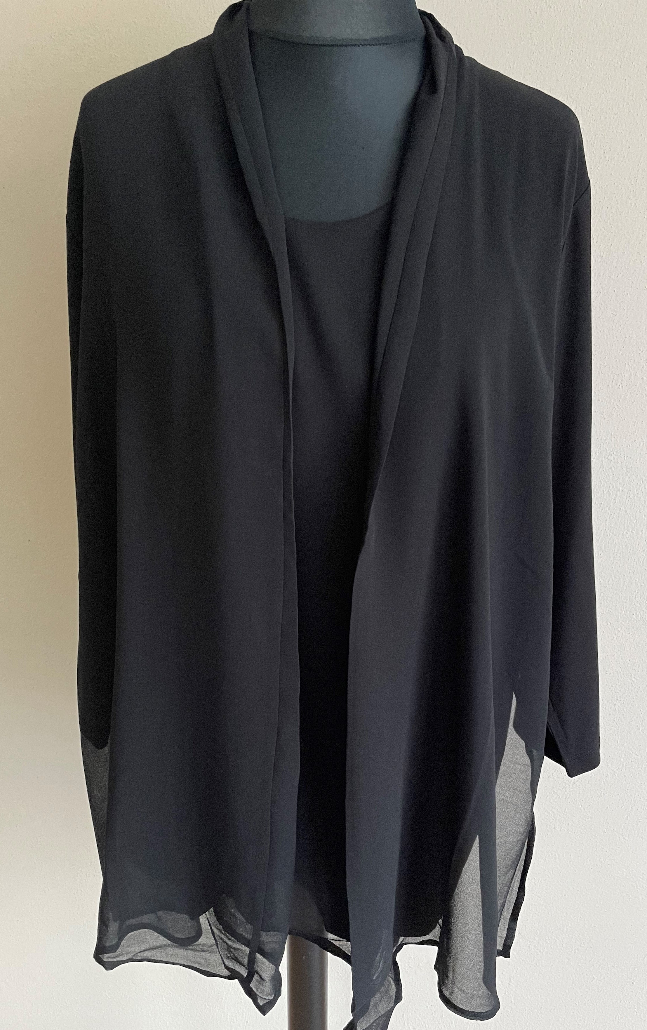 Černá halenka s šifonovým předním dílem od oblíbené německé značky Via appia, širší volnější střihstřih, velikosti odpovídají německému číslování. K dispozici také v modré barvě.