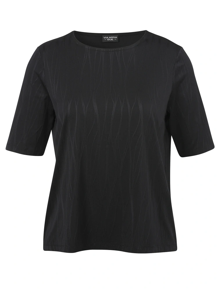 Černé triko ze strukturovaného materiálu s krátkým rukávem od oblíbené německé značky Via appia. Kulatý výstřih, rovný střih. Velikosti odpovídají německému číslování.