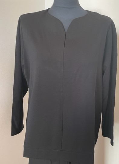Jednoduché černé triko s dlouhým rukávem z pevnějšího velice příjemného materiálu od oblíbené německé značky Via appia. Spodní díl do manžety, zajímavě řešený výstřih.
