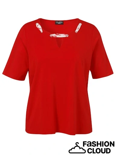 Červené triko s ozdobným výstřihem s krátkým rukávem rukávem od oblíbené německé značky Via appia. K dispozici také v tmavě modré barvě.