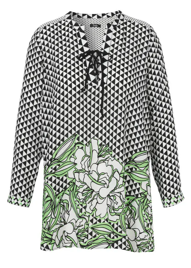 Delší tenká tunika s dlouhým rukávem od oblíbené německé značky Via appia. Postranní díly o něco delší než přední a zadní díl, možné nosit i jako šaty - délka cca ke kolenům. Zadní délka ve velikosti 52 cca 86 cm. Velikosti odpovídají německému číslování.