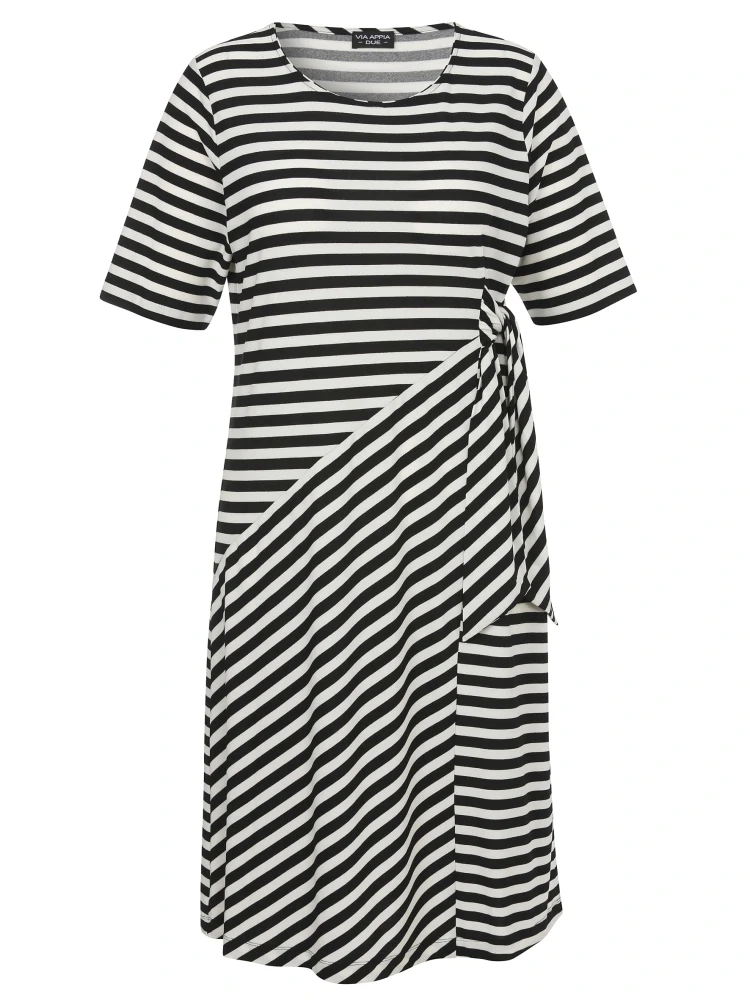 Černo-krémové pruhované šaty od oblíbené německé značky Via appia - produktová řada Via appia due - vhodná i ve větších velikostech. Zajímavě řešený přestřižený střih zakrývající i drobné nedostatky postavy.