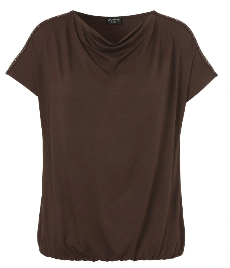 Hnědé triko se spadlým rukávem s vodou na předním díle a ozdobnými lemy na ramenou od oblíbené německé značky Via appia. Velikosti odpovídají německému číslování.