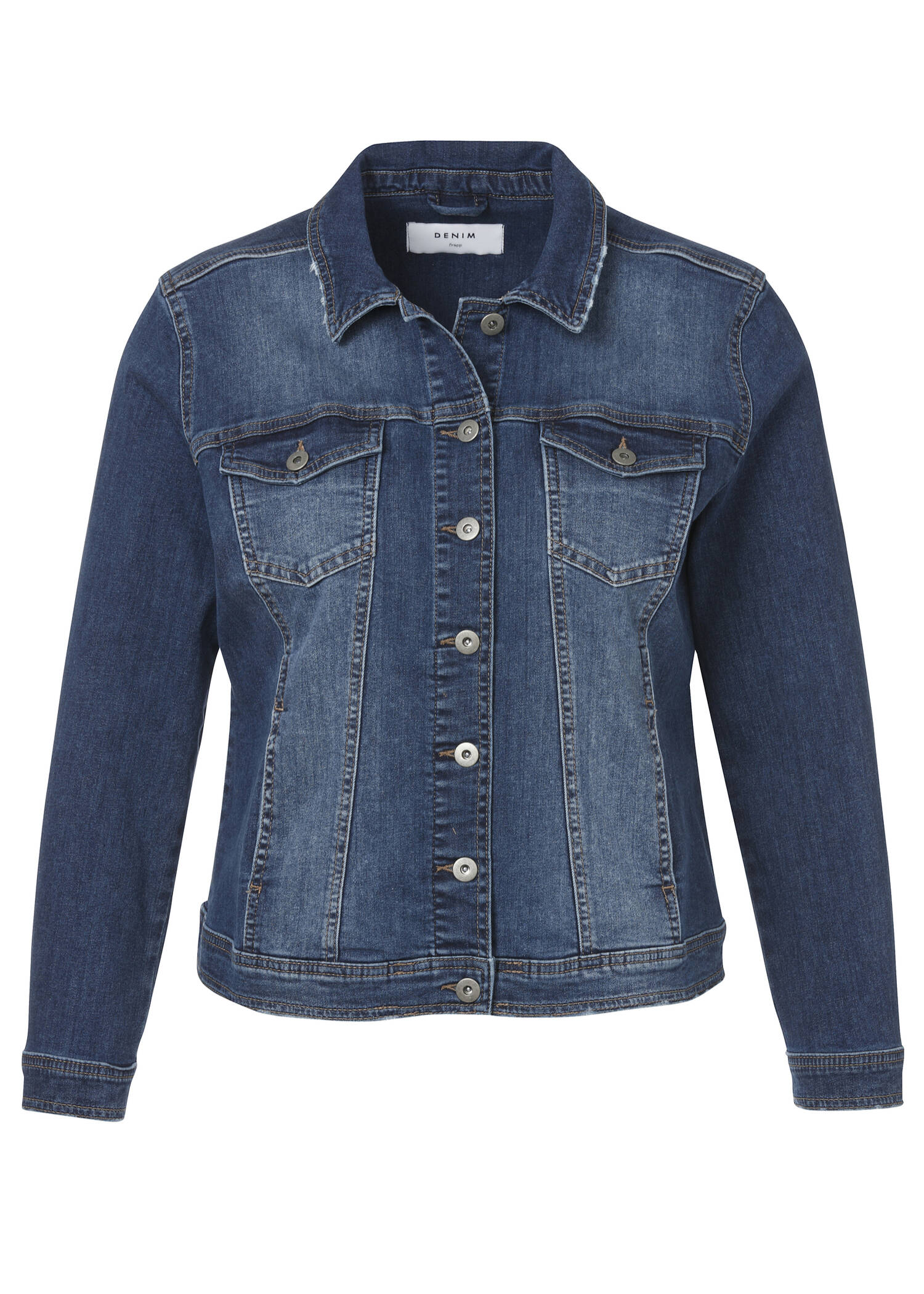 Klasická džínová bundička od oblíbené německé značky Via appia z řady Frapp, tmavší silnější materiál, klasický střih. Nedílná součsát šatníku každé moderní ženy.