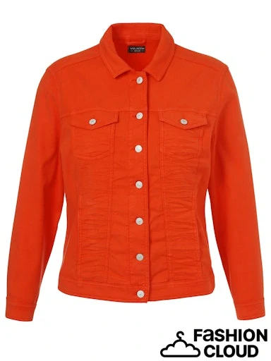 Oranžová bundička jeans střihu od oblíbené německé značky Via appia, velikosti odpovídají německému číslování.