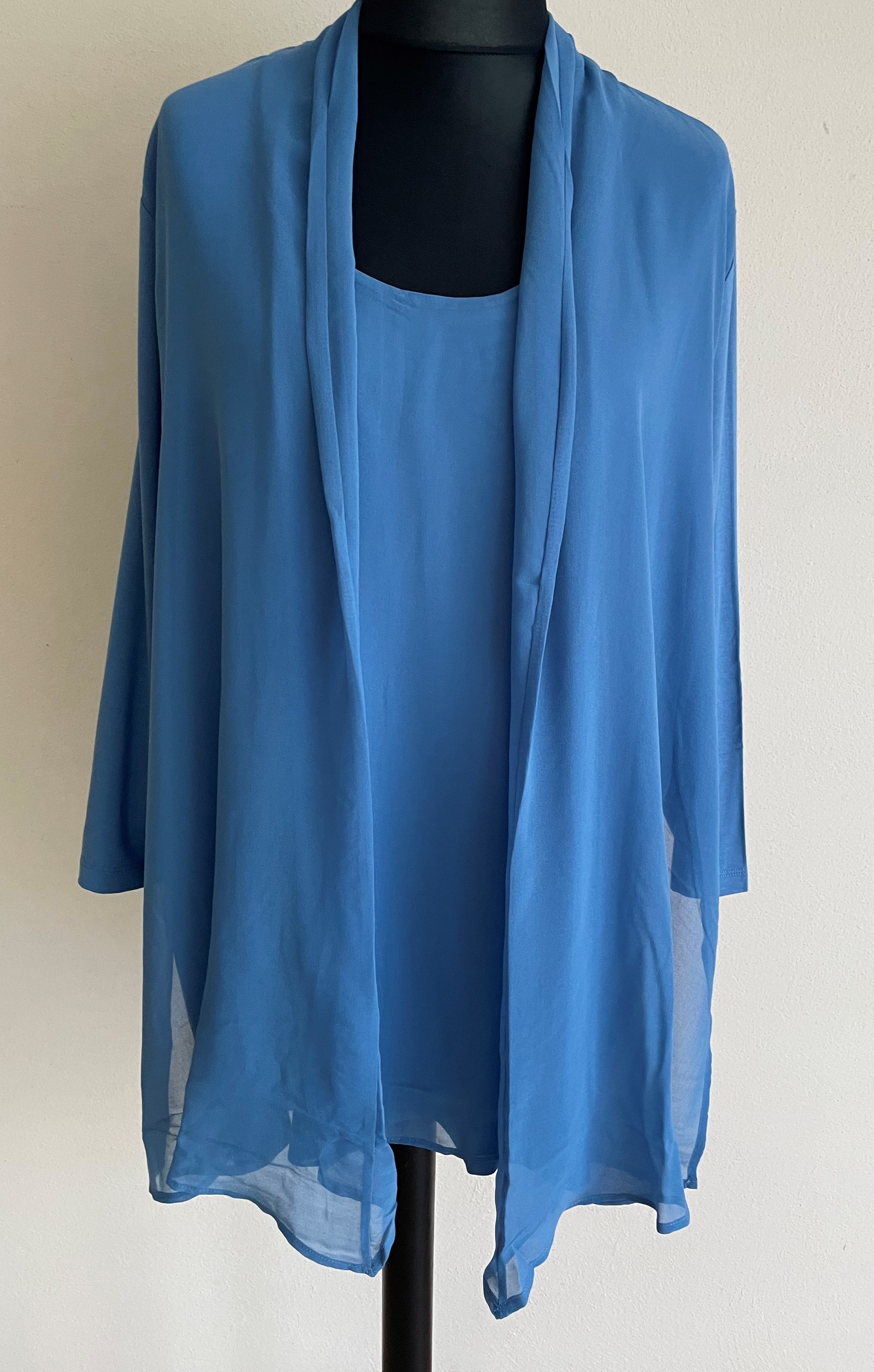 Modrá halenka s šifonovým předním dílem od oblíbené německé značky Via appia, širší volnější střihstřih, velikosti odpovídají německému číslování. K dispozici také v černé barvě.