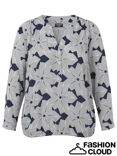 Modro-smetanová halenka od oblíbené německé značky Via appia, spodní díl do gumy pro snadné podkasání - střih oblíbený i ve větších velikostech.