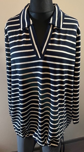 Delší pruhované triko s rozhalenkou od německé značky Via appia, rovný střih. Velikosti odpovídají německému číslování.