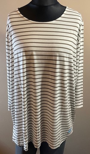 Delší pruhované triko od německé značky Via appia, rovný střih. Velikosti odpovídají německému číslování.
