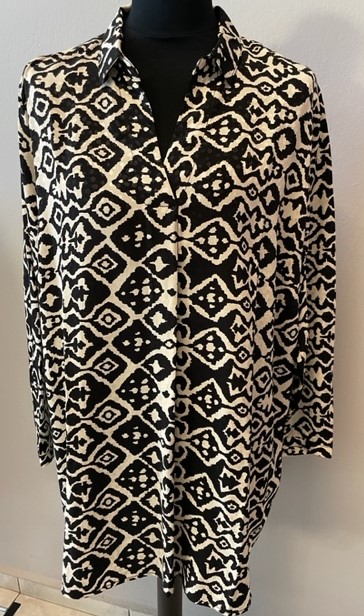 Delší halenka od oblíbené německé značky Via appia, košilový širší střih (bez zapínání). Velikosti odpovídají německému číslování.