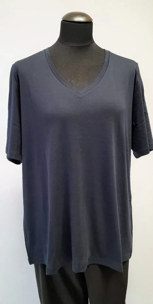 tmavě modré tričko s krátkým rukávem z velice příjemného materiálu od oblíbené německé značky Via appia, rovný střih. Velikosti odpovídají německému číslování.