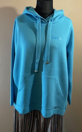 Tyrkysová mikina s kapucí od německé značky Via appia, rovný střih, velice příjemný materiál. Velikosti odpovídají německému číslování. K dispozici také v zelené barvě.