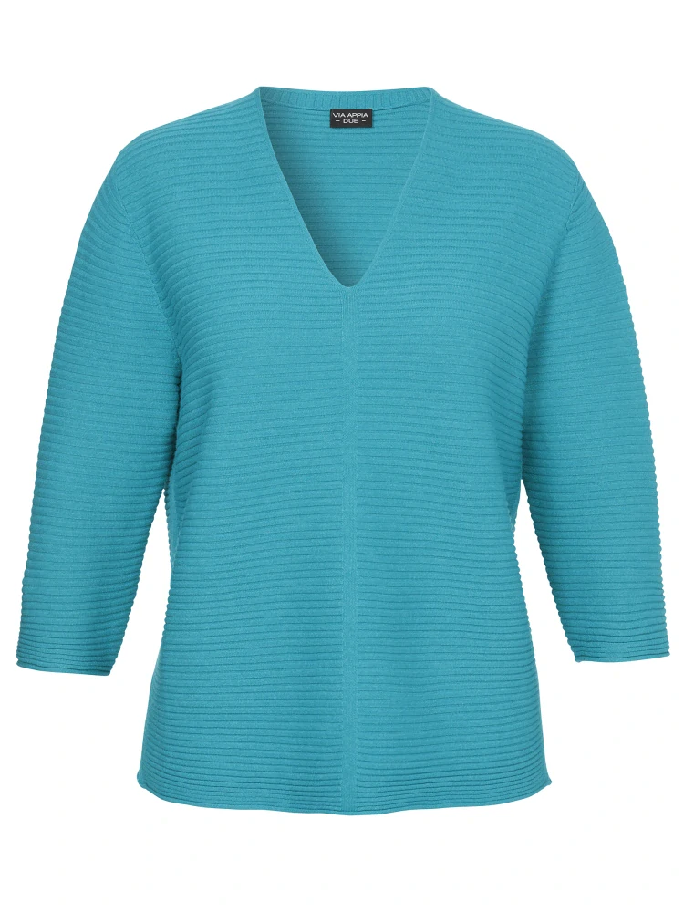 Tyrkysový svetřík s vroubkovým vzorem s V výstřihem od oblíbené německé značky Via appia. Velikosti odpovídají německému číslování.