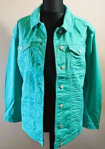 Zelená bundička jeans střihu od oblíbené německé značky Via appia. Velikosti odpovídají německému číslování. Díky podílu elastanu je velice pohodlná na nošení.