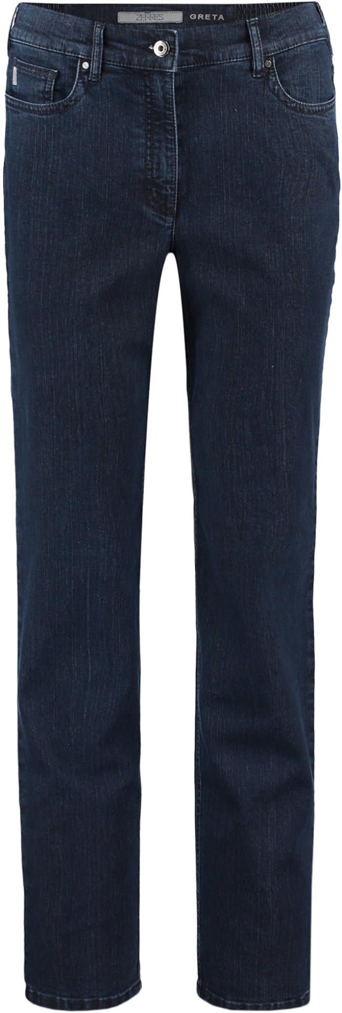 Dámské jeans kalhoty v kávovétmavě modré barvě od německé značky Zerres, strečový pásek, střední sed, střih Greta vhodný i ve větších velikostech. Velikosti odpovídají německému číslování.